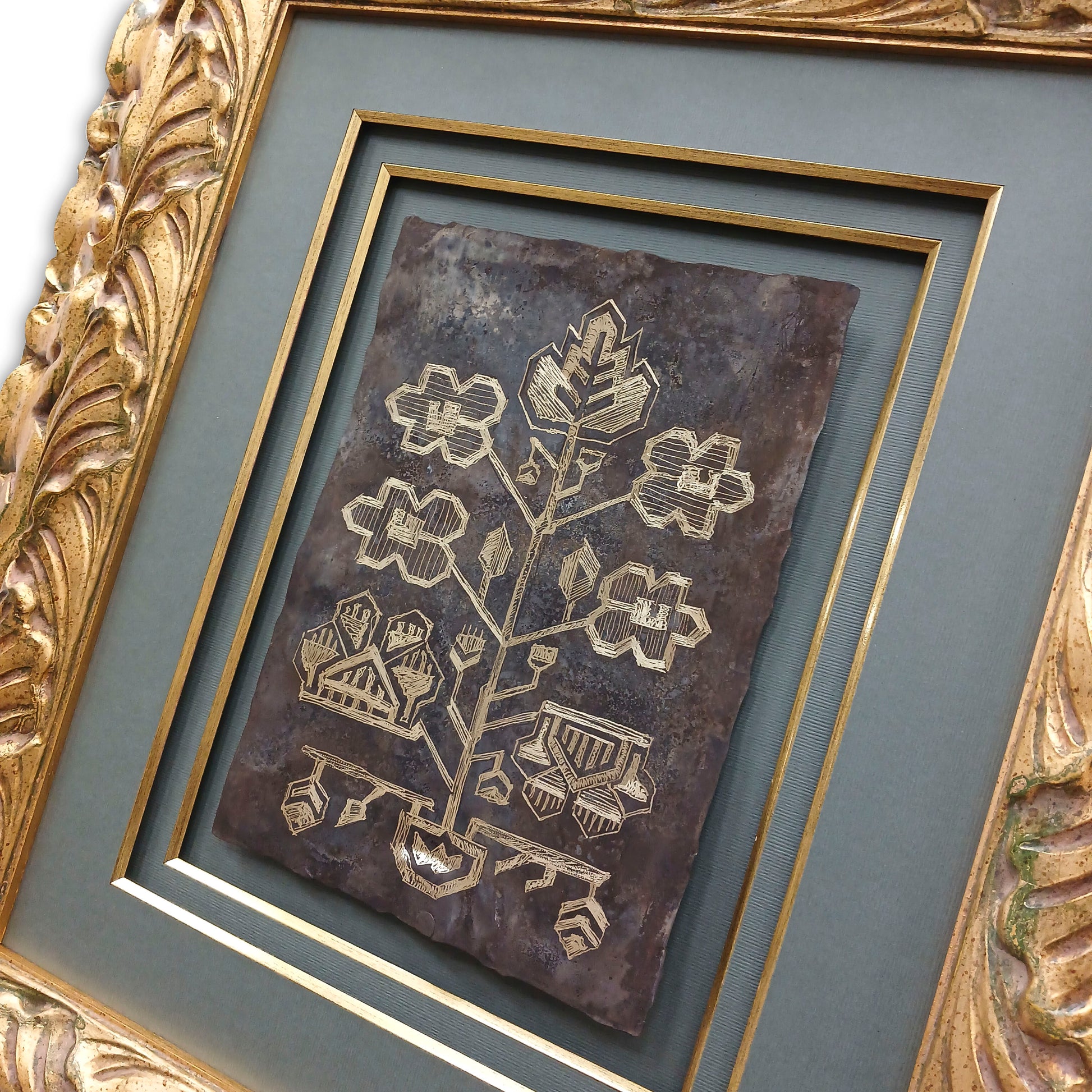 Suvenir unicat gravat manual pe bronz.